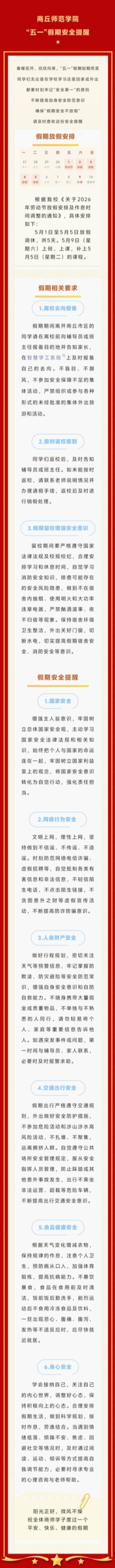 商丘师范学院 “五一”假期安全提醒